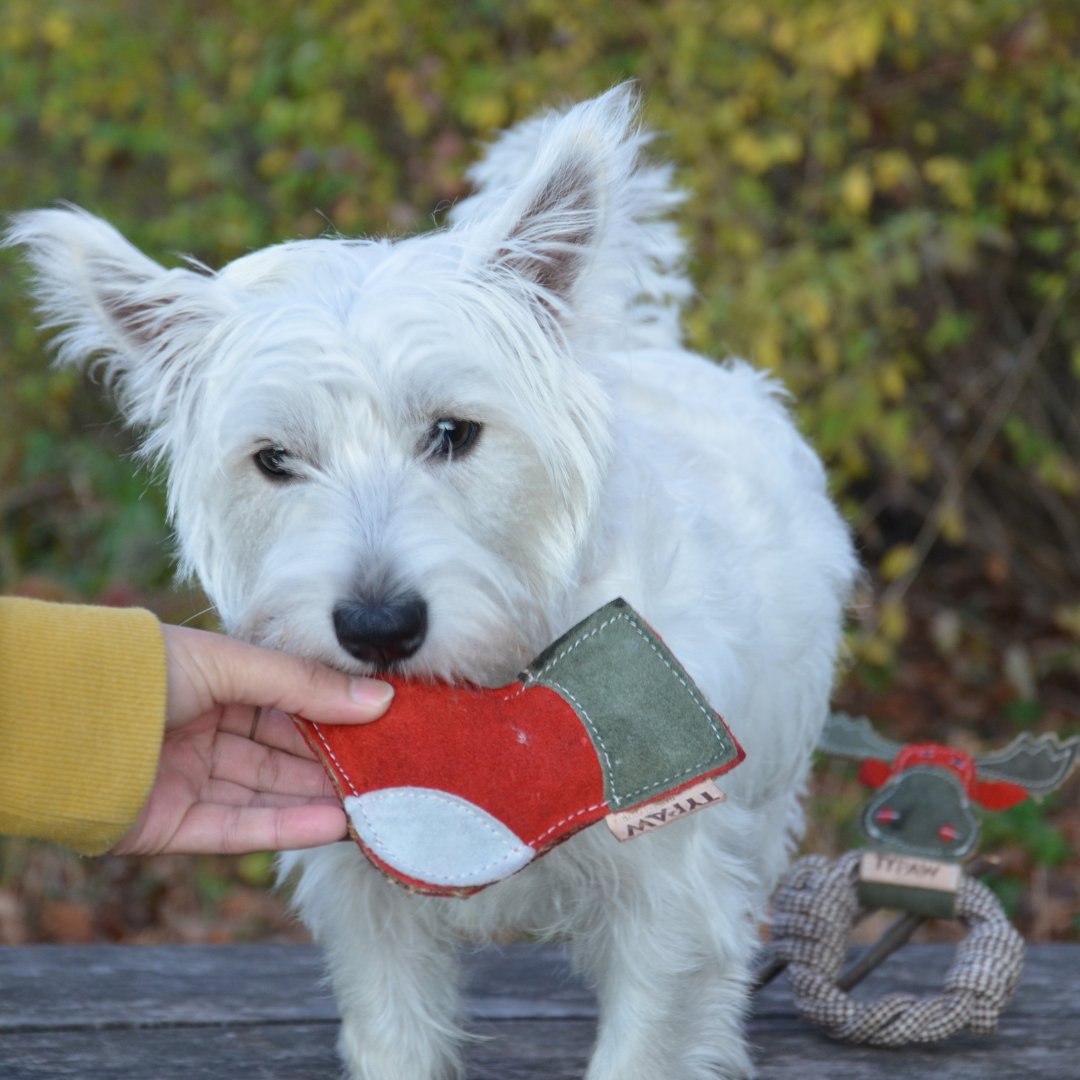 Made with suede and stuffed with coconut fibres, this toy is the perfect christmas gift for your puppy~